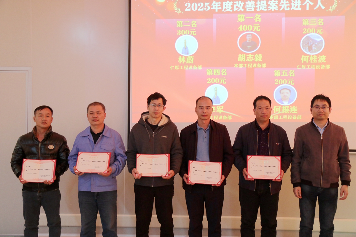精益办常务副主任黎强作工作报告。报告指出2025年在公司领导大力支持和各位同事的共同努力下,精益项目和五星班组建设按计划稳步推进。6S维持效果良好,改善提案增加55%,各车间主要生产设备故障率均实现下降,3个班组获得二星班组认证,11个班组获得一星班组认证,全年有效改善提案218份,开展大课题9项,各部门学习氛围浓厚,员工改善意识进一步提升。同时,报告提出,根据生产与质量管理中心规划,2026年精益和五星班组建设由中心聘请指导老师统筹推进。我们将结合精益老师培训课程,围绕规范现场管理,减少浪费和安全隐患,通过不良点改善实现降本增效和效率提升,同时以精益人才培养为核心要务,建设学习积极性高、改善能力强的智慧团队,助力提高玉林制药的整体运营效率和竞争力。