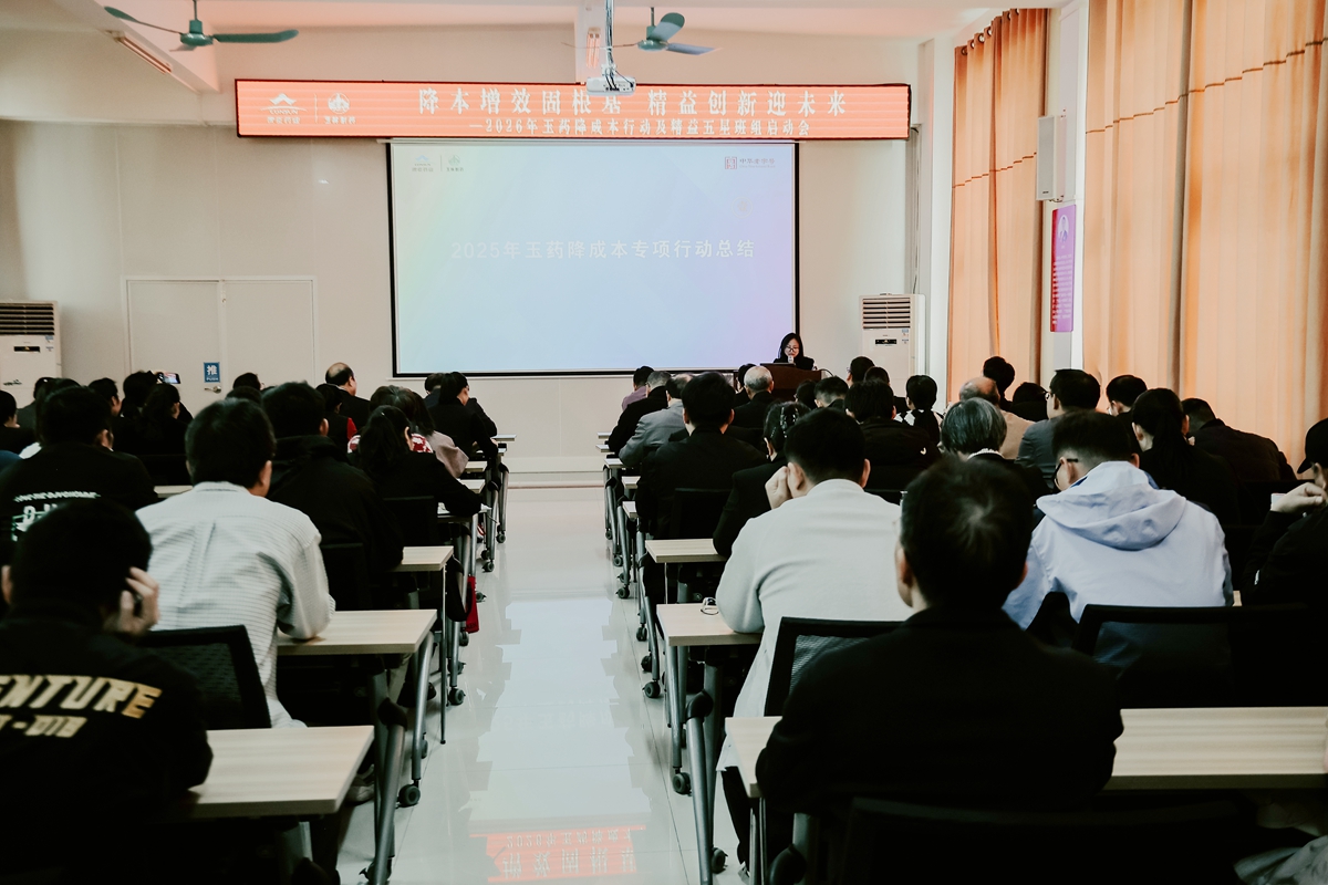 为全面深化精益管理,凝聚全员攻坚合力,近日,玉林制药召开2026年降成本行动及精益五星班组启动会。会议以“降本增效固根基 精益创新迎未来”为主题,全面总结2025年降本攻坚成果,表彰先进典型,部署2026年降成本行动及精益五星班组建设的重点任务。公司领导、各部门负责人及骨干员工等100余人参加会议。