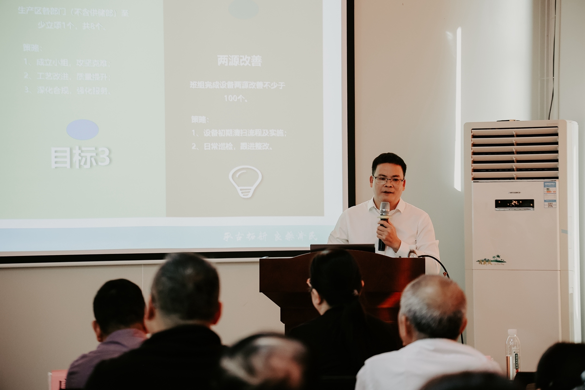 随后,生产管理部经理兼精益办副主任黎强对2026年玉药降成本行动及精益五星班组建设项目进行专题宣讲,明确项目目标、实施路径与推进要求,推动降成本及精益管理再上新台阶。