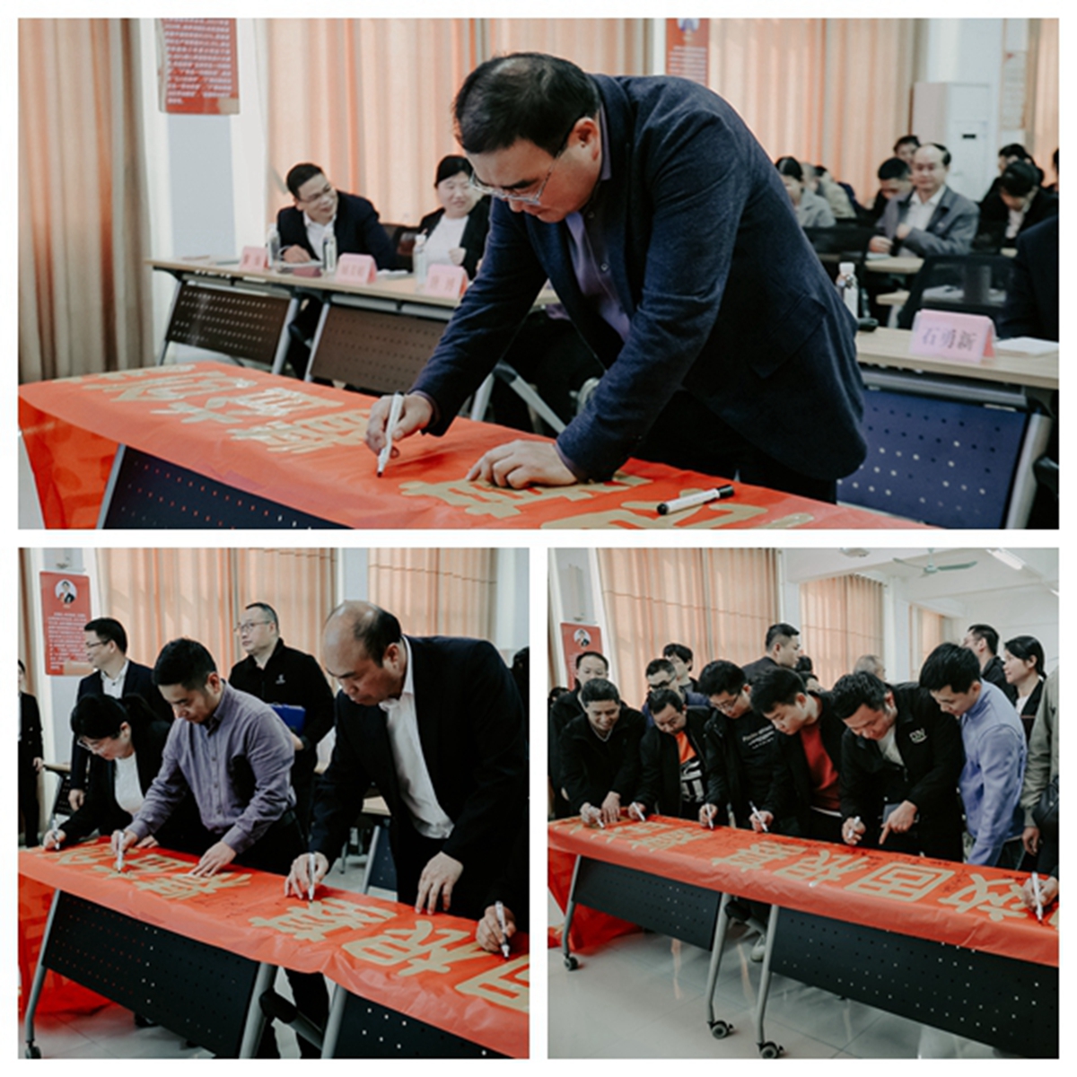 在郭总带领下,全体参会人员起立宣誓,誓言铿锵,振奋人心。宣誓结束后,全体人员依次在主题横幅上郑重签名,以实际行动许下打赢硬仗的庄严承诺。