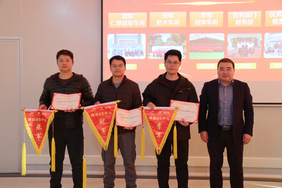 图 | 玉林制药董事长兼总经理郭国荣为生产区6S获奖部门颁奖