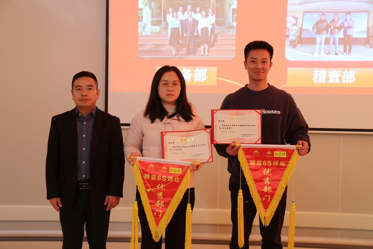 图 | 玉林制药副总经理兼精益办主任唐博为办公区6S优秀部门颁奖