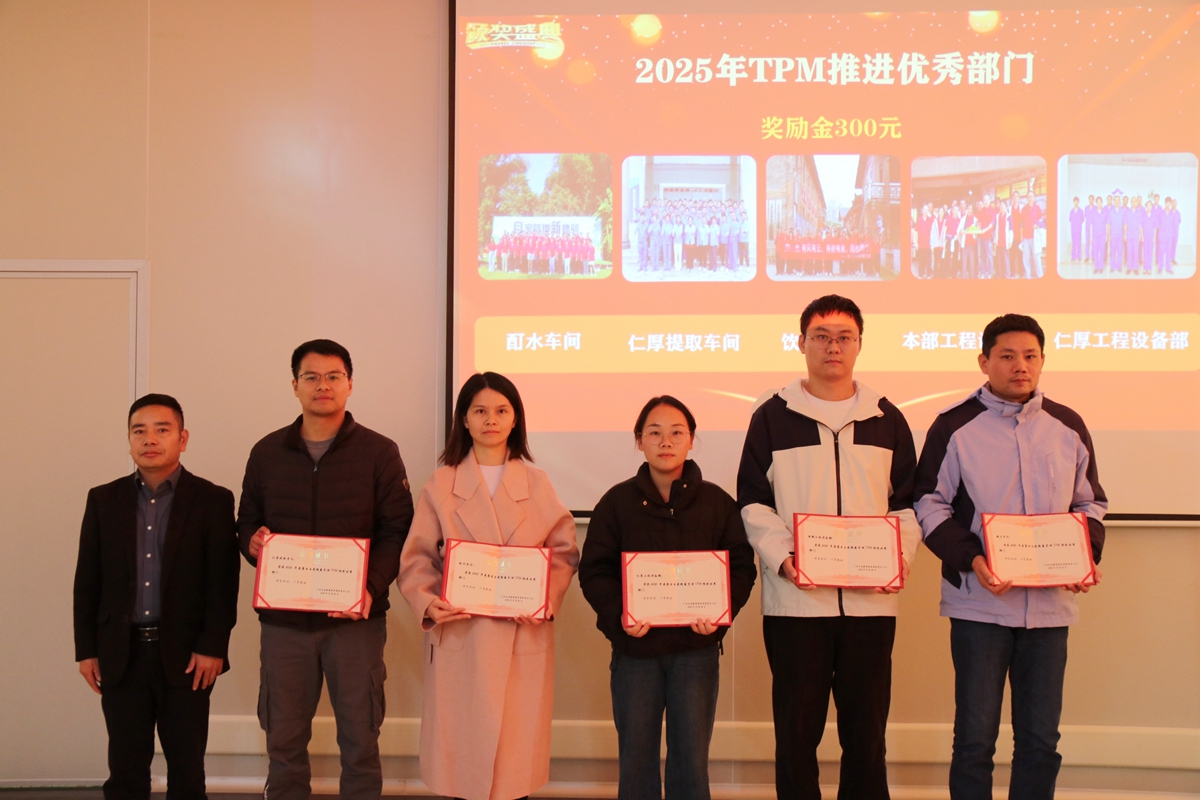 精益办常务副主任黎强作工作报告。报告指出2025年在公司领导大力支持和各位同事的共同努力下,精益项目和五星班组建设按计划稳步推进。6S维持效果良好,改善提案增加55%,各车间主要生产设备故障率均实现下降,3个班组获得二星班组认证,11个班组获得一星班组认证,全年有效改善提案218份,开展大课题9项,各部门学习氛围浓厚,员工改善意识进一步提升。同时,报告提出,根据生产与质量管理中心规划,2026年精益和五星班组建设由中心聘请指导老师统筹推进。我们将结合精益老师培训课程,围绕规范现场管理,减少浪费和安全隐患,通过不良点改善实现降本增效和效率提升,同时以精益人才培养为核心要务,建设学习积极性高、改善能力强的智慧团队,助力提高玉林制药的整体运营效率和竞争力。