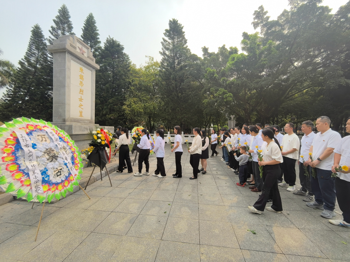 3月28日上午,朱锡昂烈士陵园内松柏苍翠、庄严肃穆。玉林制药党员整齐列队,神情庄重,向朱锡昂烈士纪念碑敬献鲜花,表达对革命先烈的深切缅怀与崇高敬意。在低沉肃穆的氛围中,全体人员低头默哀,追思烈士为国家独立、民族解放英勇就义的壮举,感悟革命先辈坚定的理想信念与无私的奉献精神。